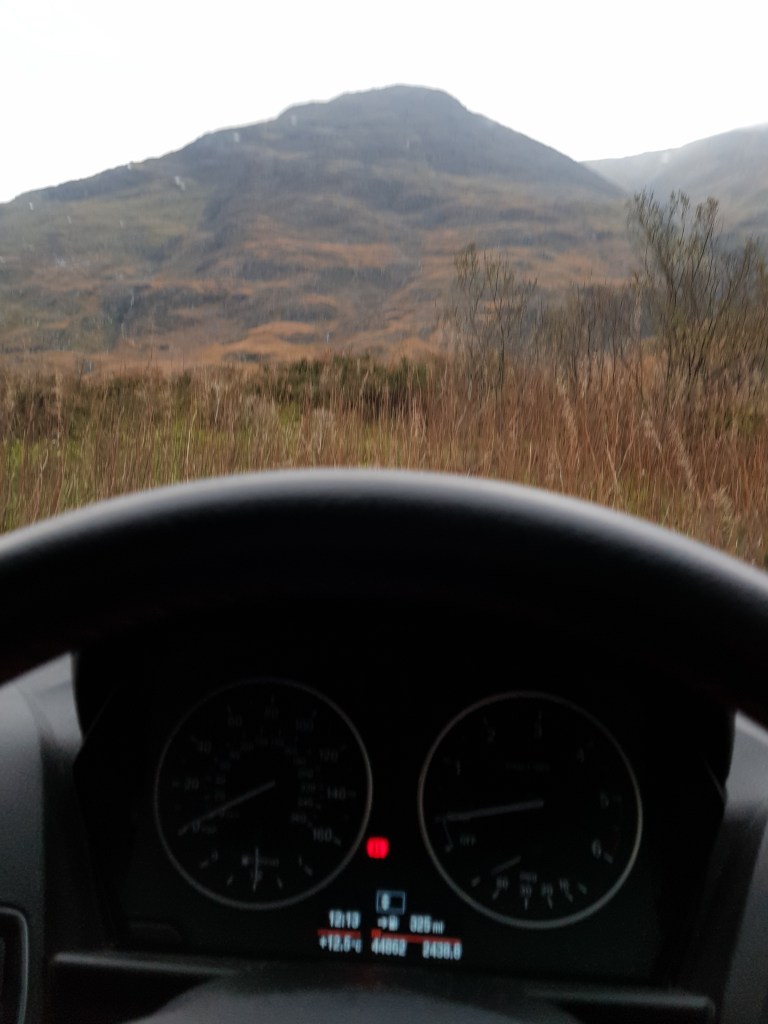 As I drove through the winding roads around Loch Lomond, there was an abundance of colorful autumn foliage present around me, rays of light would seep through openings within the trees. The comforting vibrancy of the scenery was about to take another drastic change as I was creeping up to the steps of the Scottish Highlands.