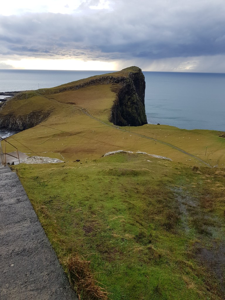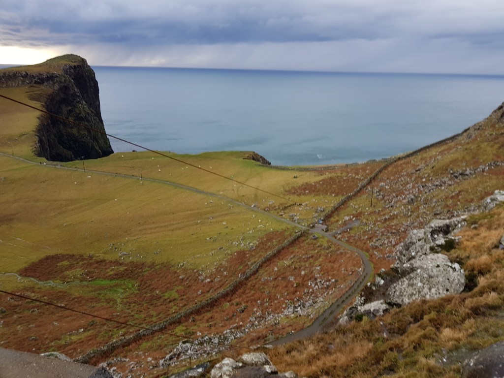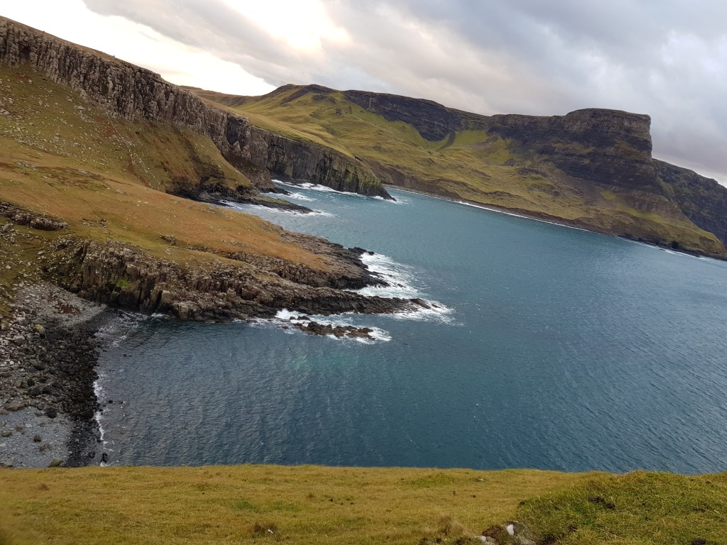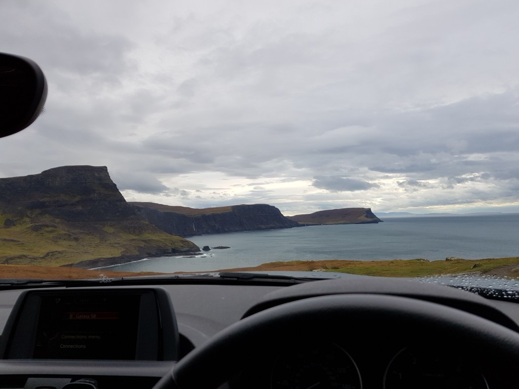 The further I traveled north, the less of civilization I saw; I was on my way to the Isle of Skye, passing through the rugged mountains of the Highlands. As I was coming up to the bridge that leads you onto the Island, the land had began to mix with sea, a pearlescent rich blue color of water had given vibrancy to the picturesque’ dull skies and baron landscapes; it was a change of theme that relaxes and mellows out its spectators, rather than the harrowing vibe felt from observing the bleak mainland highlands.