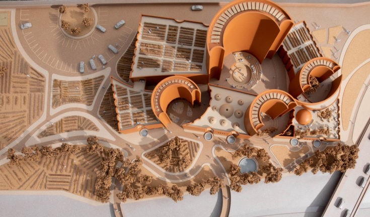 It’s designed as a whimsical promenade where urban dwellers gather for cultural experiences, consisting of a partially open-environment with loose housing in the form of shells that took inspiration from Niger’s rural cylinder clay granary clusters and are made up of earth bricks.