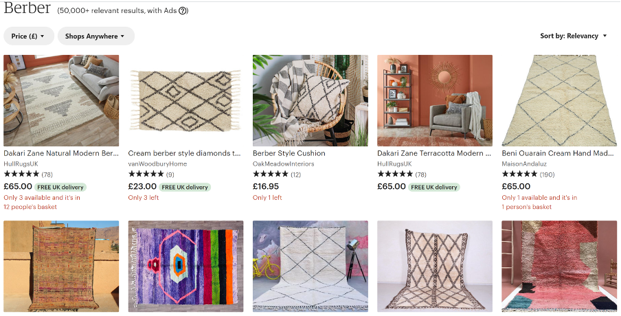 Etsy has already become an avenue popping with Berber crafts & goods! Many likely being from self-entrepreneurial ‘middlemen’ who may ethically or unethically partner with Berber artisans creating the merchandise.