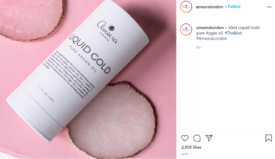 Similar to Folks & Tales, Ameera London package and market their products in light of a modern aesthetic. Bottles housing Argan Oil include minimalistic written labels detailing the origins of where the oil is sourced from to further appease consumers who are seeking authentic hair & skincare products that are taking over the industry by storm.