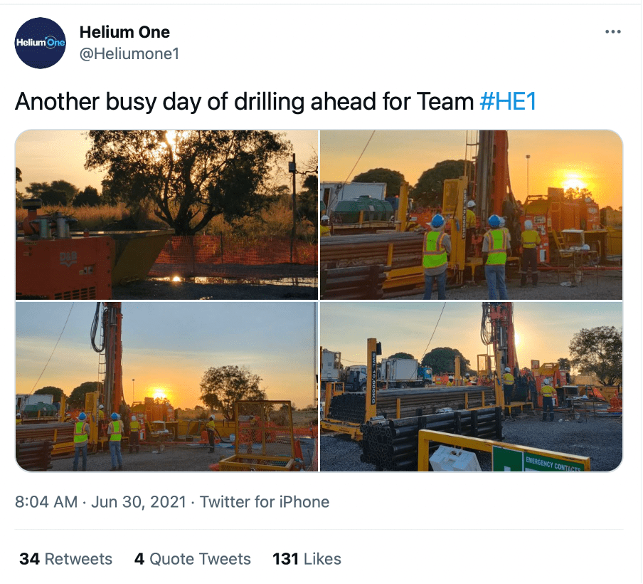 Helium One actively post their progress on Twitter, and recently they uncovered significant amounts of Helium in an unexpected area that was above the primary target zone, which they are still working on reaching.