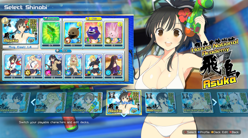 The game is a full-blown hentai hub. You can spend hours interacting with a catalogue of hot bodies in many creative ways, from viewing cards to dress up and fondling with boobs. These are all features outside of the core shooter gameplay, showcasing the multi-faceted nature of Senran Kagura Peach Beach Splash.