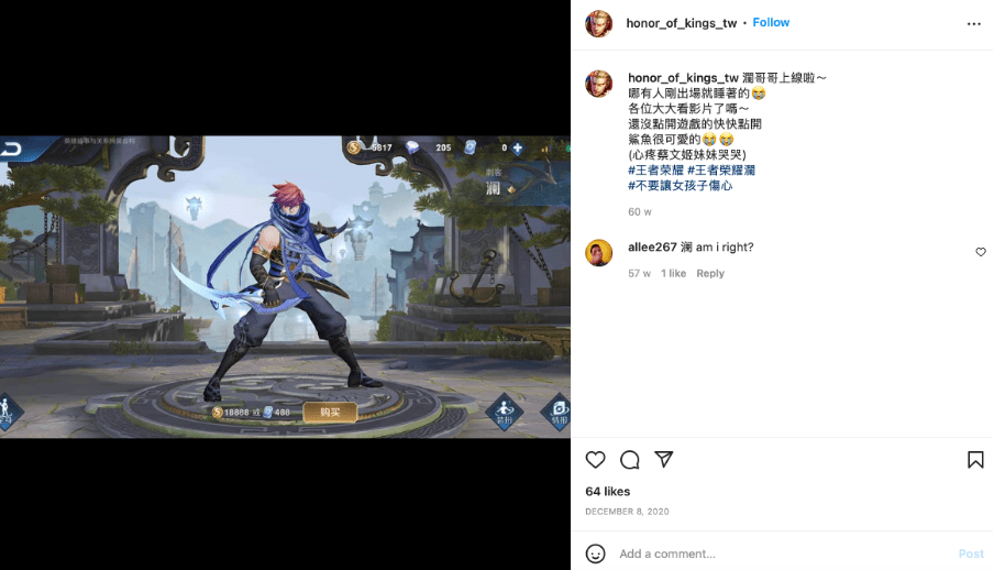 Screenshot Courtesy of honor_of_kings_tw on Instagram