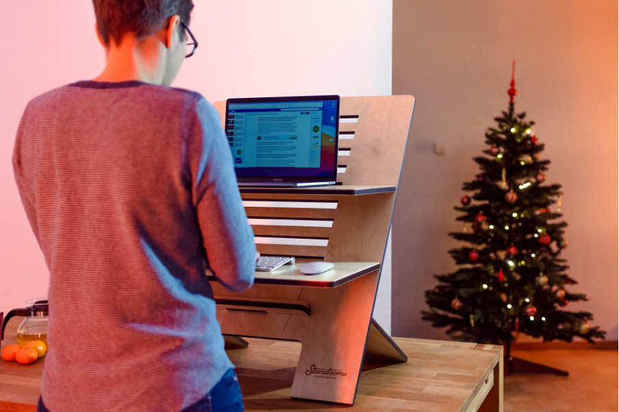 Desk-based jobs present an exhausted list of health issues, such as stiffening joints, poor blood circulation and weakened muscles. The posture issue is caused by the habit of arching our spines forward while seated. We typically commit to this unhealthy habit for one key reason—many desk setups lead people to arch their backs forward because their laptop screens, textbooks or notepads are below eye level.