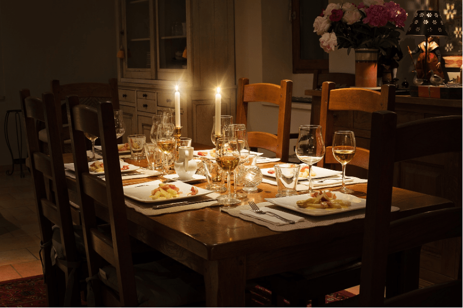 It should only be acceptable to look down at your plate to judge what part of your food you want to pin to your cutlery and place in your mouth. The rest of the time should be engaging with family or friends around you at eye level—it’s good for your back and relationships!