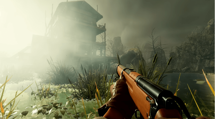 The Nightingale trailer starts off like any innocent survival game with your handy tools like a pickaxe chipping into rocks, picking berries, sitting by a fire to stay warm and hunting bore, all with impressive animations akin to The Forest survival game. The narrator even makes it apparent that ‘giving how fragile you humans are, I suggest staying fed, dry and rested, should be your main priority’.